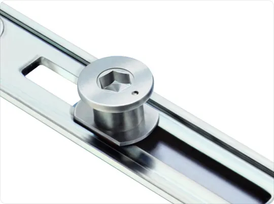Правильно подобранный антивандальный комплект – планки, цапфы, дополнительные устройства, обеспечивают максимальный уровень защиты. В зависимости от вариации комплекта, по периметру рамы можно установить от 9 точек запирания, причем все они запираются поворотом одной ручки.