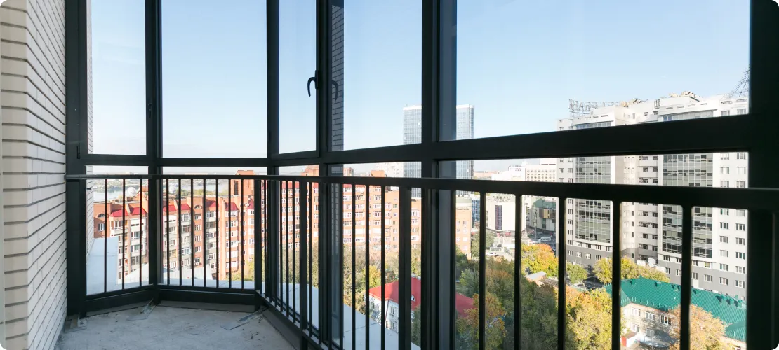В зависимости от особенностей балкона, можно установить поворотно-откидные, глухие окна или раздвижные системы, заказать классические белые рамы или цвета «металлик», с имитацией состаренной древесины. Уровень тепло- и шумоизоляции регулируется типом профиля и стеклопакета. Подробнее о пластиковых окнах можно узнать здесь.
