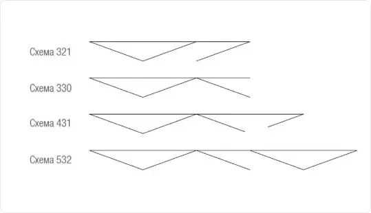 • Схема 321. Первая дверь складывается к центру, а вторая открывается в сторону. Завершает закрытие последняя створка.