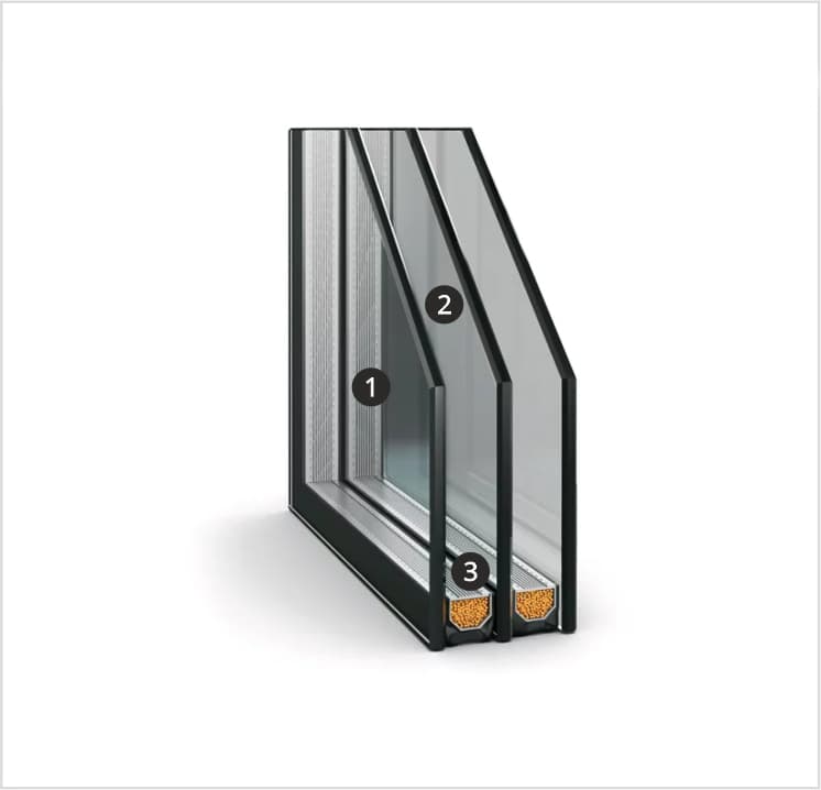 Двухкамерный стеклопакет REHAU обладает хорошей теплоизоляцией, снижая теплопотери благодаря двум воздушным камерам, которые служат дополнительным барьером для холода.